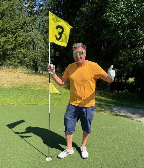 " ... Det var litt at et comeback på golfbanen. Hadde skadet hånden og var og fjernet sting på hånda på formiddagen, allstå samme dag som jeg gjorde HIO`en, og fikk go fra legen til endelig å spille igjen. Hadde da ikke rørt en golfkølle på litt over 4 uker ..."