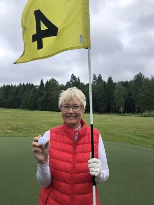 Jorunn Hilmarsdottir med årets Smerta HiO nummer 4 på hull 4